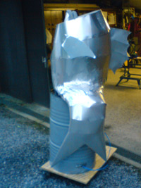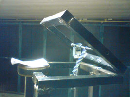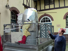 Im Ruhezustand hat der DUCKFISCH seinen Kopf eingezogen. Bei der Betätigung einer Mechanik durch einen Menschen schiebt sich sein Kopf aus seinem Rumpf.