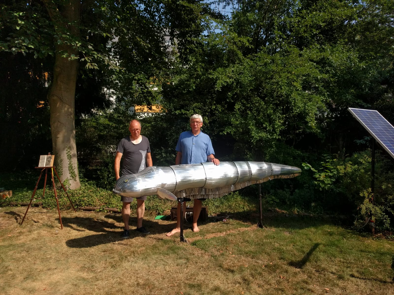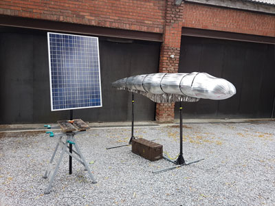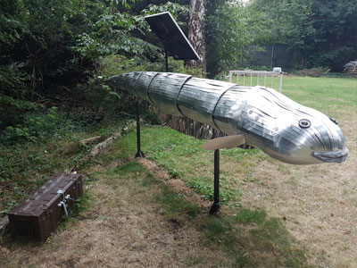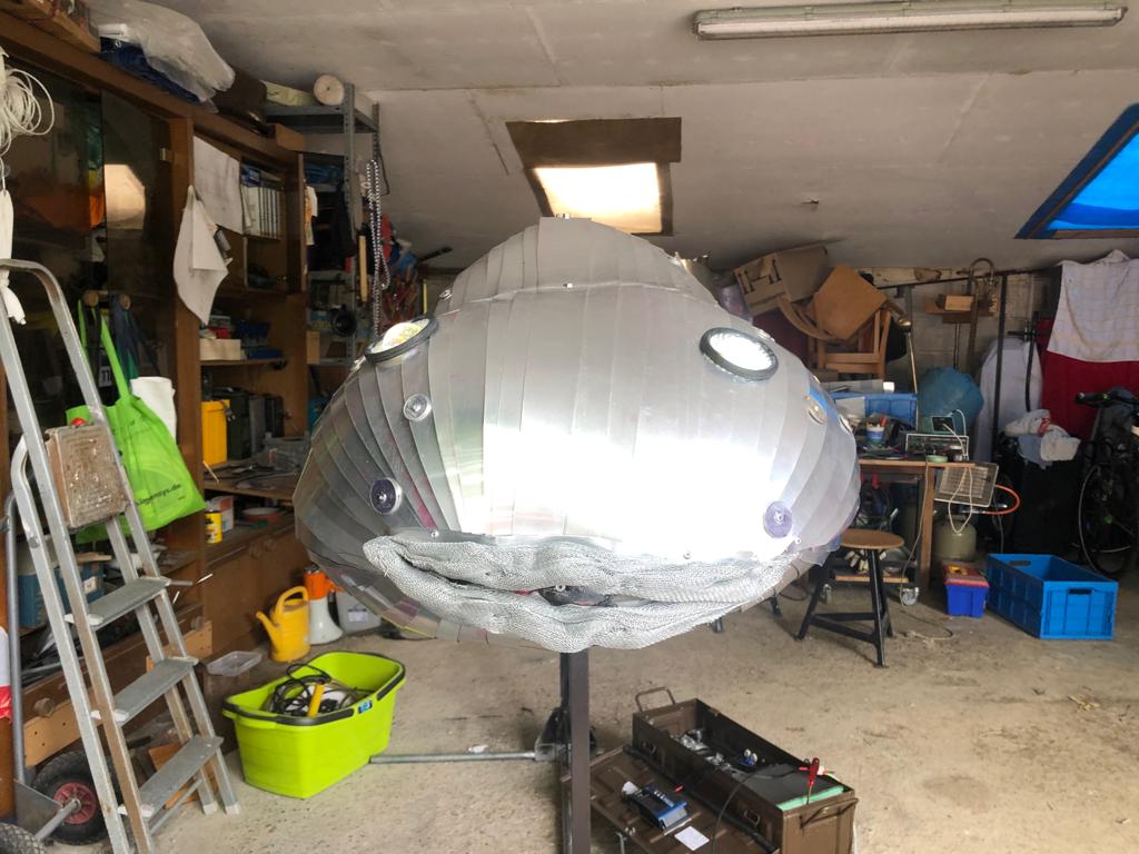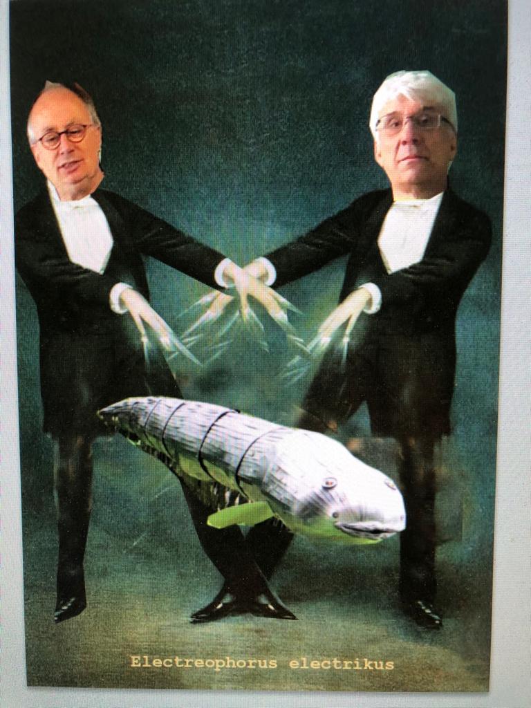 Grundgedanke:Bereits die Ägypter (2700 v.Ch. ) erkannten die Kompetenzen des Zitteraals. Er setzt zum Beutefang elektrische Energie ein. Des weiteren besitzt er ein elektrisches Organ zur Orientierung (GPS) und eines zur Kommunikation (Smartphone). Der Zitteraal ist somit ein bedeutendes Beispiel des elektrischen Phänomens. Jenes Phänomen, das als Heilmittel für unsere verfeinstaubten Städte gilt und dessen nachhaltige Erzeugung der Rettung unseres Trabanten dient. Der Fisch bleibt unsere Metapher für gesellschaftliche Situationen.